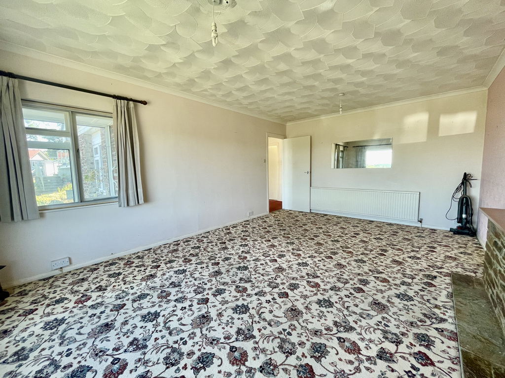 The property offers generous accommodation throughout and has fantastic potential for modernisation to create a superb family or retirement home. The layout includes an entrance porch, welcoming hallway, large lounge/dining room with far-reaching views, kitchen, and a conservatory to the side of the property. There are two well-proportioned double bedrooms and a family bathroom.