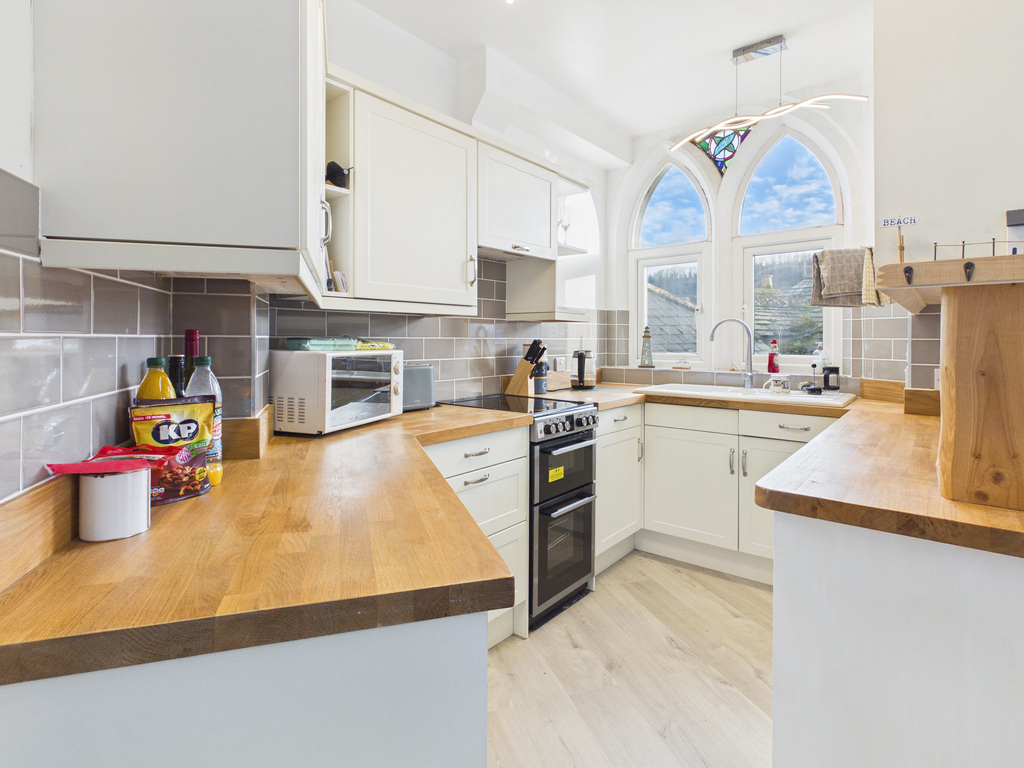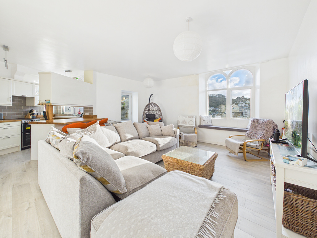 Occupying an elevated position within the attractive converted chapel known as Chapel Court, this well-presented two-bedroom apartment enjoys delightful south-westerly views across the harbour, rooftops and towards West Looe. The property combines character features, including original arched stone windows, with comfortable modern living and benefits from spacious open-plan accommodation and a private terrace positioned to enjoy the outlook.