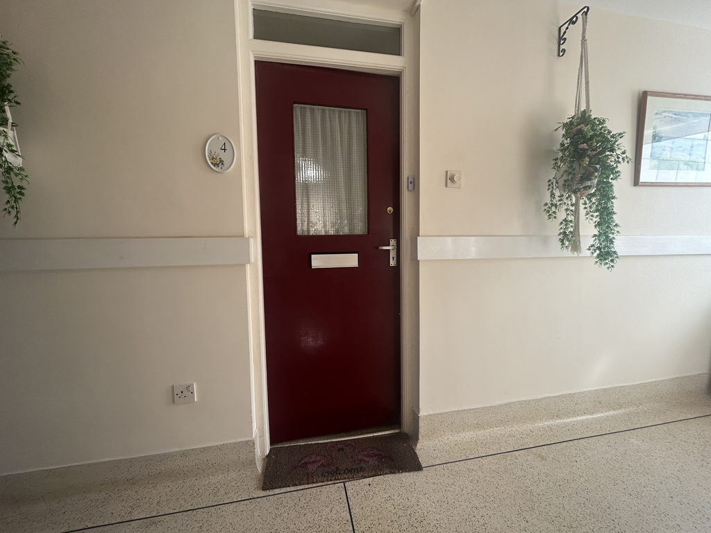 The apartment block is accessed via the main entrance opposite the harbour, next to the clothing shop. A secure telephone entry system and glazed door lead into the communal area, with stairs rising to the second-floor landing where Apartment 3 is situated.