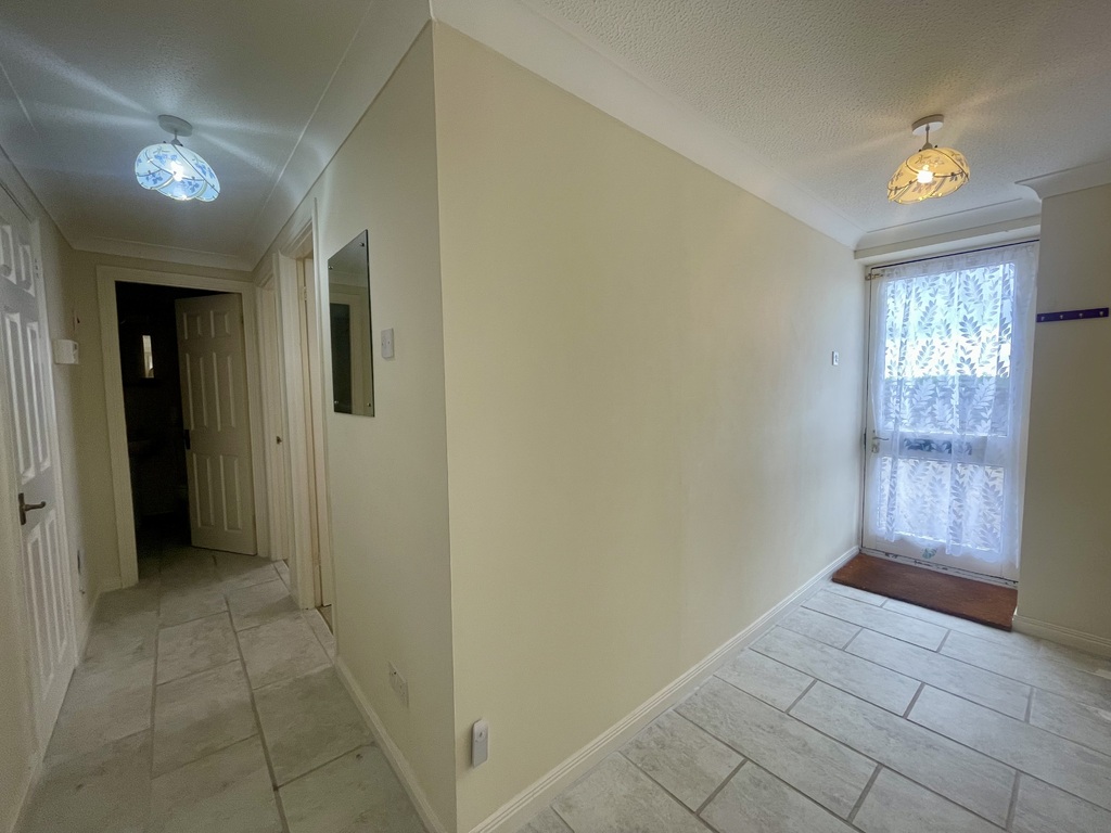 The property is approached from the parking area with entry via a glazed wooden door to the side of the main building, leading into a spacious, tiled hallway with doors providing access to all rooms.
