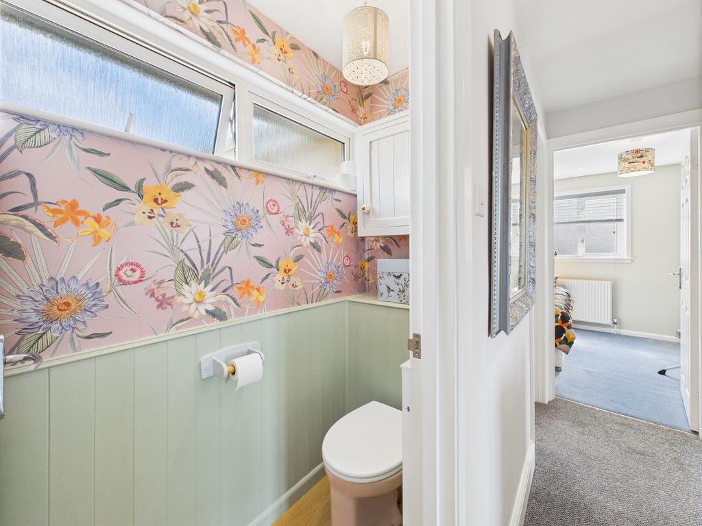 Upstairs, the property offers four well-proportioned bedrooms. The principal bedroom enjoys a calm, restful feel, while one of the additional bedrooms is fitted with its own built-in shower for added convenience. A family bathroom and separate WC complete the first-floor accommodation, ensuring practicality for busy households.