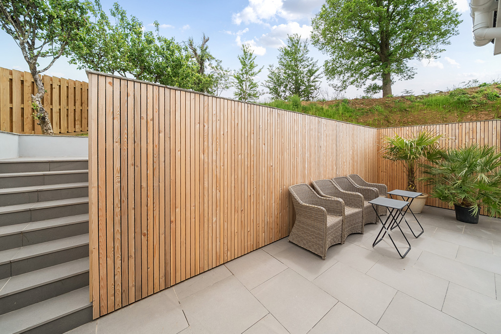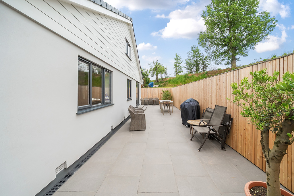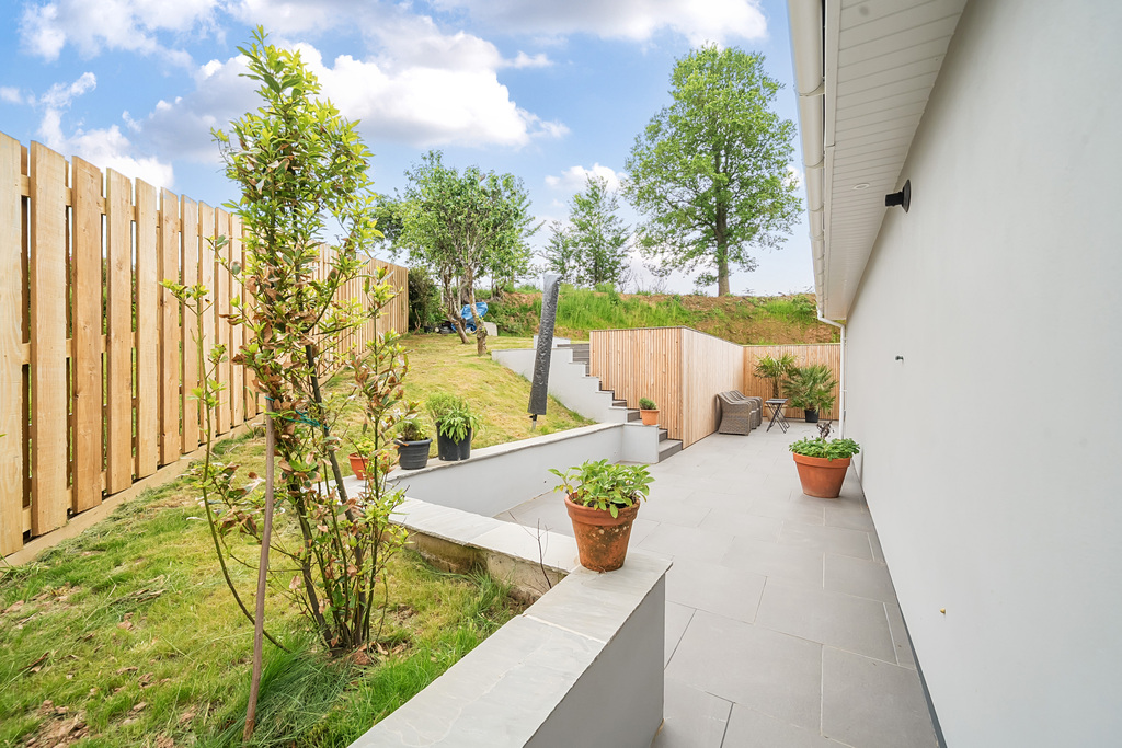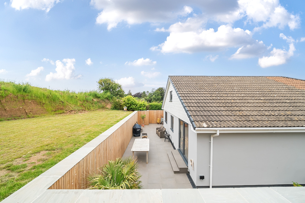 The garage has been completely rebuilt to make it wider with electric doors for ease and convenience, there is additional off road parking in front and to the side for up to 4 vehicles. Stepped access leads up to the front door and around both sides of the property. The side and rear gardens have been totally transformed and offer complete privacy with a large higher level lawn backing onto open farmers fields and a generously extended patio enjoying all day sun.