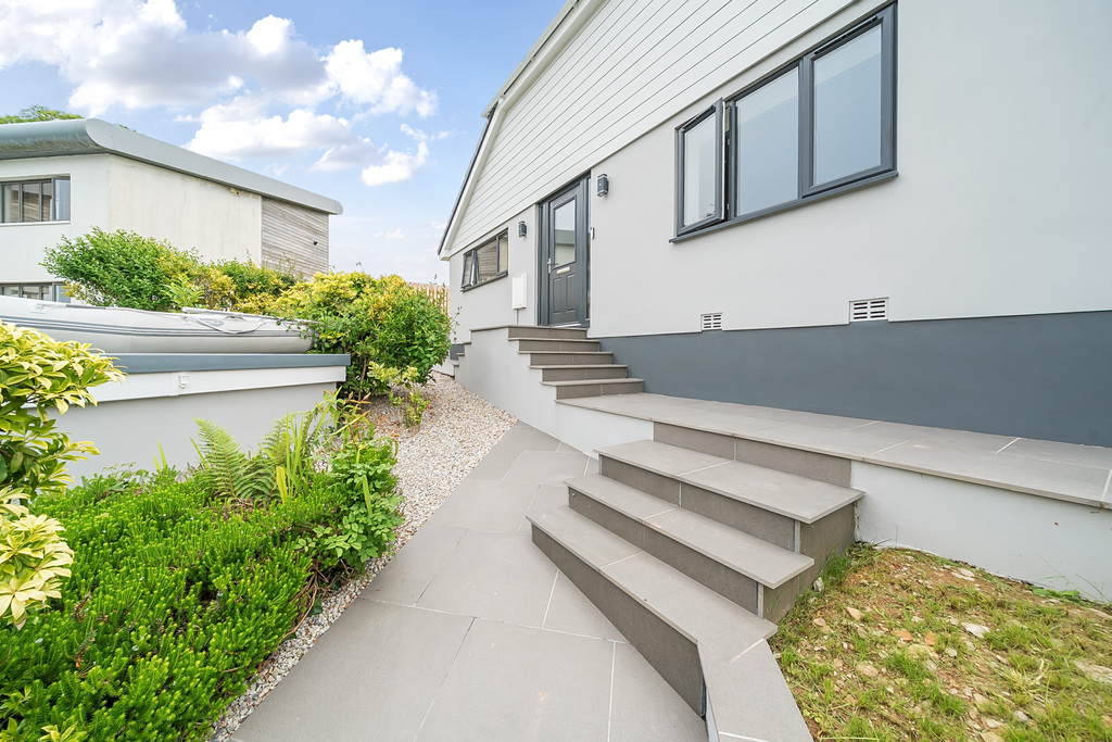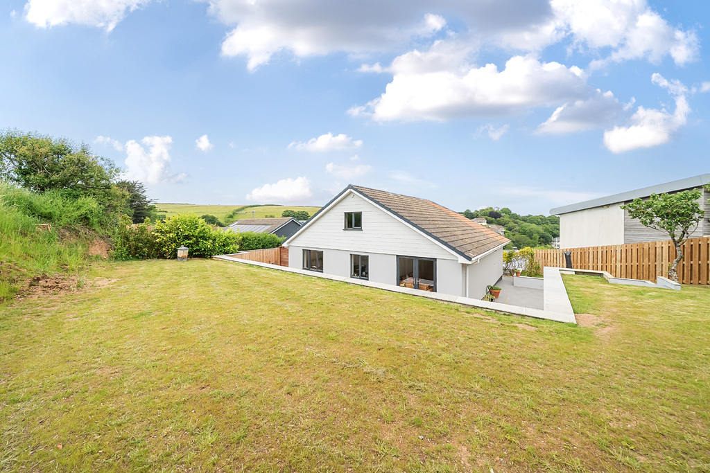 This beautifully renovated detached bungalow in West Looe offers stylish, contemporary living throughout. Accessed via a private driveway, the home opens into a spacious hallway leading to an impressive open-plan living area with a modern fitted kitchen and direct access to a large rear patio and garden. There are two generous double bedrooms, including a principal with en-suite, a third single/office room, and a luxury family bathroom. The insulated loft with rear garden views offers potential for conversion (STP). Outside, the property features a newly rebuilt wider garage with electric doors and parking for up to four cars. The landscaped gardens enjoy full privacy, all-day sun, and back onto open fields. EPC C.