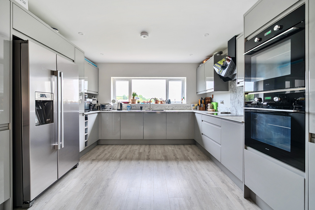 The bungalow has undergone a complete transformation and full renovation, offering a stylish and contemporary interior throughout. At the heart of the home is a generously sized open-plan living space incorporating a luxurious fitted kitchen with integrated appliances and ample storage. Patio doors open directly onto the large patio area and rear garden, creating a perfect flow for indoor-outdoor living.