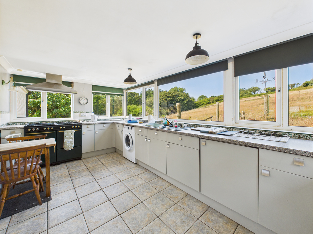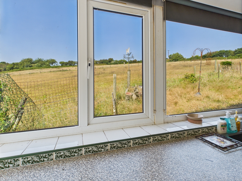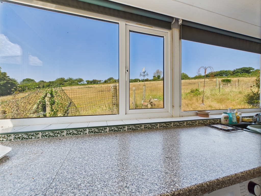 Excellent potential and offered with no onward chain. Set in a peaceful countryside location with far-reaching views, this detached bungalow sits on a generous plot with surrounding gardens and a one-acre paddock to the rear. The property offers bright and spacious accommodation with excellent potential throughout and would benefit from a programme of modernisation. Outside, a private driveway leads to a garage/workshop with power and lighting, plus a large under-bungalow storage area. The paddock has separate access and offers versatility for a variety of uses. A rare opportunity to create a stunning home in a sought-after coastal setting. EPC E.